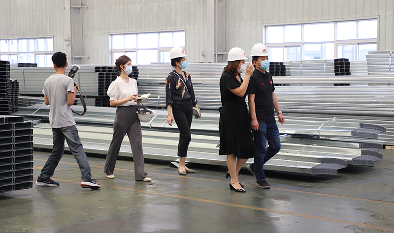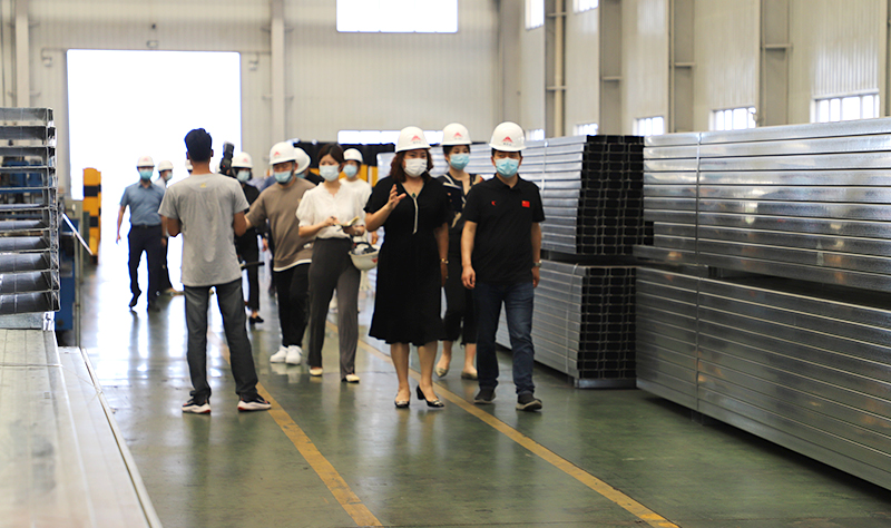 參觀期間,各級領導在公司王董事長陪同下,共同走進生產車間,先后參觀了型鋼車間、光伏車間以及焊接車間。通過深入交流,詳細了解公司產品的科技研發、生產銷售等情況,并對公司重視科技創新表示肯定。